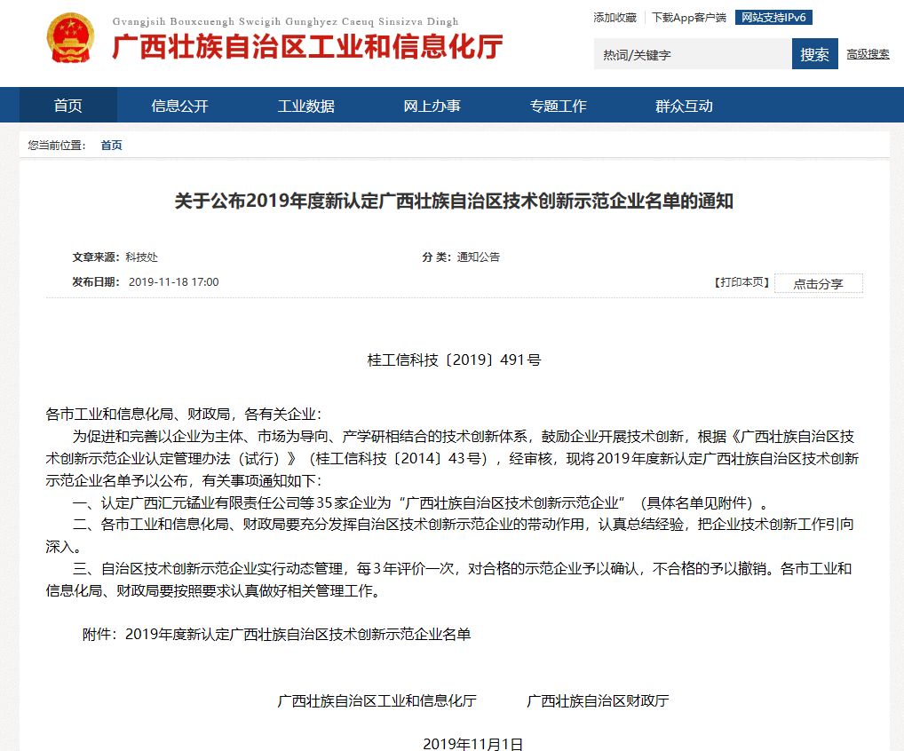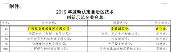 近日,廣西壯族自治區(qū)工業(yè)和信息化廳、廣西壯族自治區(qū)財政廳公布了2019年度新認定廣西壯族自治區(qū)技術(shù)創(chuàng)新示范企業(yè)名單。廣西縱覽線纜集團有限公司成功上榜。