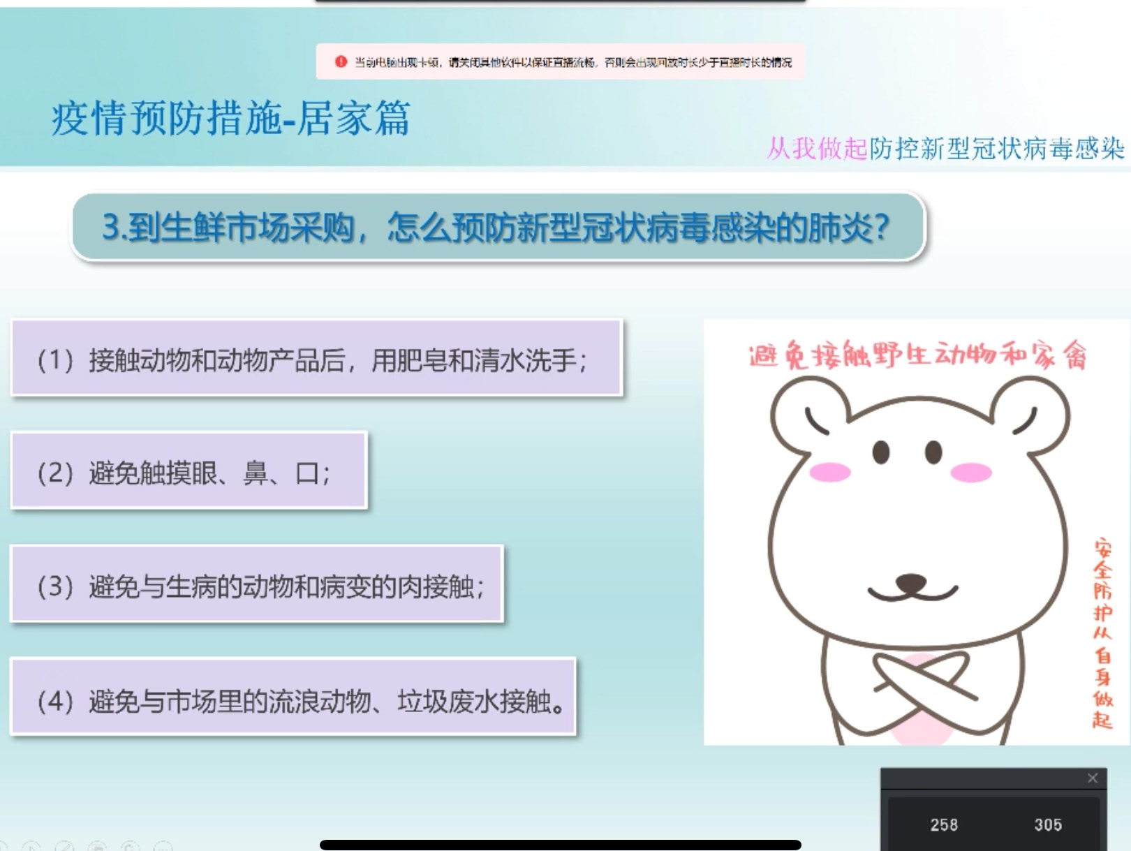 2月17日20點(diǎn)20分,廣西縱覽線纜集團(tuán)人力行政中心工作人員晏蒙以釘釘直播的形式,向全體員工進(jìn)行了一次新冠肺炎防控知識(shí)培訓(xùn),幫助大家正確認(rèn)識(shí)新型冠狀病毒,掌握科學(xué)防護(hù)方法。 “為了讓大家科學(xué)正確地了解防控知識(shí),今天我們以一種不一樣的模式開啟這堂培訓(xùn)課……”在此次視頻直播里,主播的語言生動(dòng)有趣又嚴(yán)謹(jǐn)科學(xué),同事們聽得津津有味。 本次直播分三個(gè)部分:一是關(guān)于新冠肺炎的相關(guān)知識(shí),二是疫情最新動(dòng)態(tài),三是疫情預(yù)防措施。 “效果非常好,語言清晰很流利!”低壓電纜事業(yè)部田利國觀看直播后說道。 直播結(jié)束后,300多位員工在線完成并通過了本次新型冠狀病毒防治閉卷考試。 |