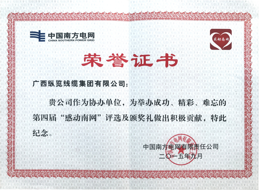 2015年獲得感動南網(wǎng)榮譽證書