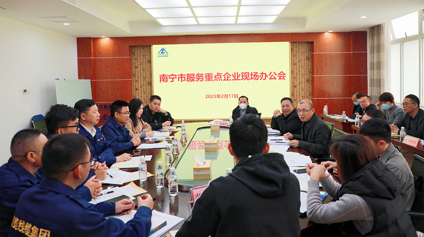 2月17日,南寧市政府副秘書(shū)長(zhǎng)梁明志率領(lǐng)南寧市市監(jiān)局、發(fā)改委、工信局、住建局、自然資源局等政府部門(mén)組成的工作專(zhuān)班到縱覽集團(tuán)召開(kāi)南寧市服務(wù)重點(diǎn)企業(yè)現(xiàn)場(chǎng)辦公會(huì)。 會(huì)議聽(tīng)取了陳秀銳董事長(zhǎng)有關(guān)縱覽集團(tuán)在生產(chǎn)經(jīng)營(yíng)、服務(wù)重大工程項(xiàng)目以及企業(yè)進(jìn)一步融入強(qiáng)首府戰(zhàn)略等方面遇到的問(wèn)題困難情況匯報(bào),專(zhuān)班各成員單位根據(jù)部門(mén)職能職責(zé)在會(huì)上給予答疑解惑,針對(duì)性的提出解決有關(guān)問(wèn)題困難的辦法和思路。公司領(lǐng)導(dǎo)吳培軍、陳楊、陳思行及市場(chǎng)副總監(jiān)蘇宏發(fā)參加會(huì)議。 |
