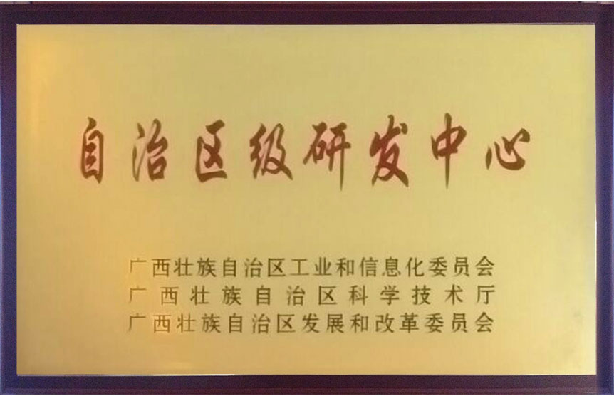 廣西壯族自治區(qū)工業(yè)和信息化委員會(huì)、廣西壯族自治區(qū)科學(xué)技術(shù)廳、廣西壯族自治區(qū)發(fā)展和改革委員會(huì)頒發(fā)的自治區(qū)級(jí)研發(fā)中心